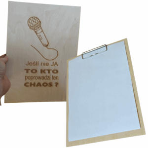 Prowadzisz animacje ze scenariuszem? Jesteś konferansjerem i chcesz wyglądać profesjonalnie? Podkładka na scenariusz wydarzenia to twój must have! Drewniana podkładka sprawi, że będziesz wyglądać stylowo, ale także twój scenariusz będzie bezpieczny, a ty bez problemu będziesz mógł/mogła z niego korzystać!