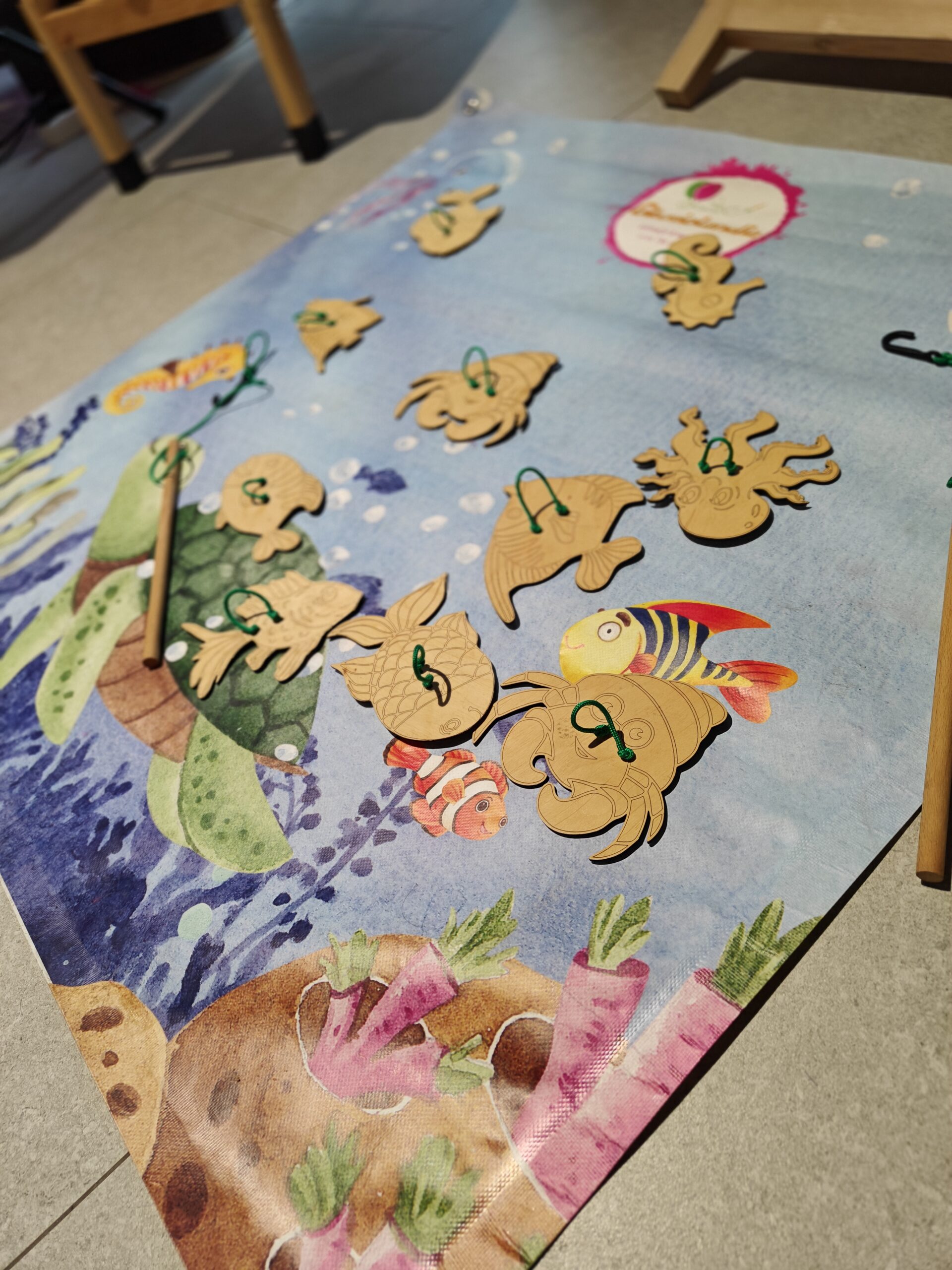 – 20 drewnianych stworzeń wodnych wielkości 8-10cm;